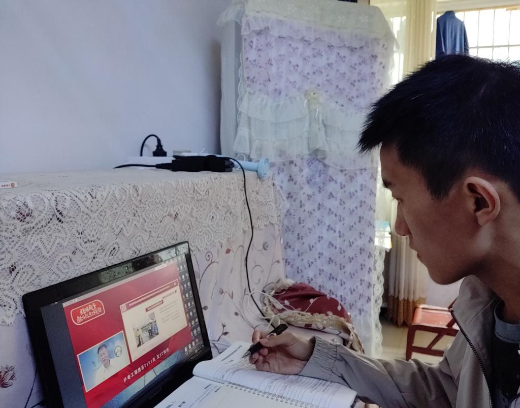 公司部分党员教师和同学们在家里、在实习单位积极参加到在线学习中。