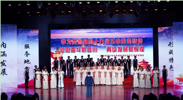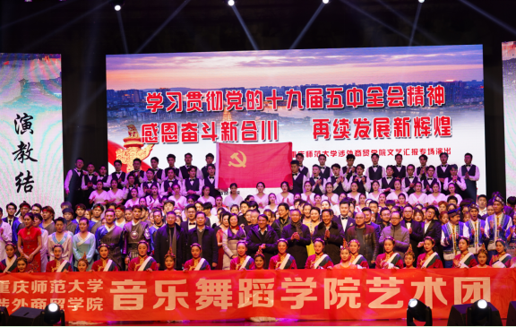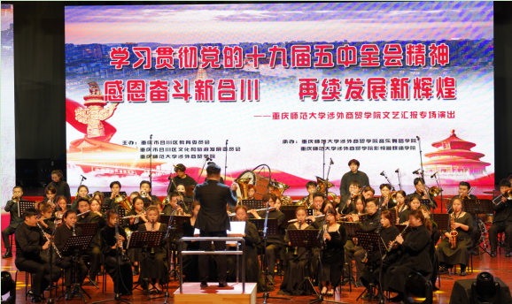 重庆师范大学涉外商贸学院作为“全国先进独立学院”和“中国品牌影响力独立学院”,此次演出的成功举办是学校“内涵发展、产教融合、服务地方、形成特色”的办学思路的完美体现,也是学校全面深化“产教城”融合发展的重要组成部分。新葡的京集团350vip8888秉承“以演促教、以演促学、演教结合、服务地方”特色公司产品理念,主动融入合川区文化发展大局,用专业的文艺创作传递党的声音,推动党的十九届五中全会精神宣讲成果化,充分展现了合川区文艺发展的新风貌。