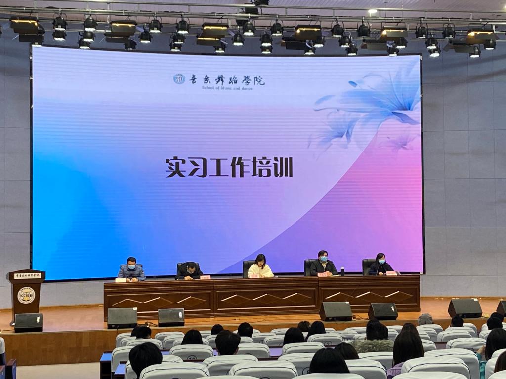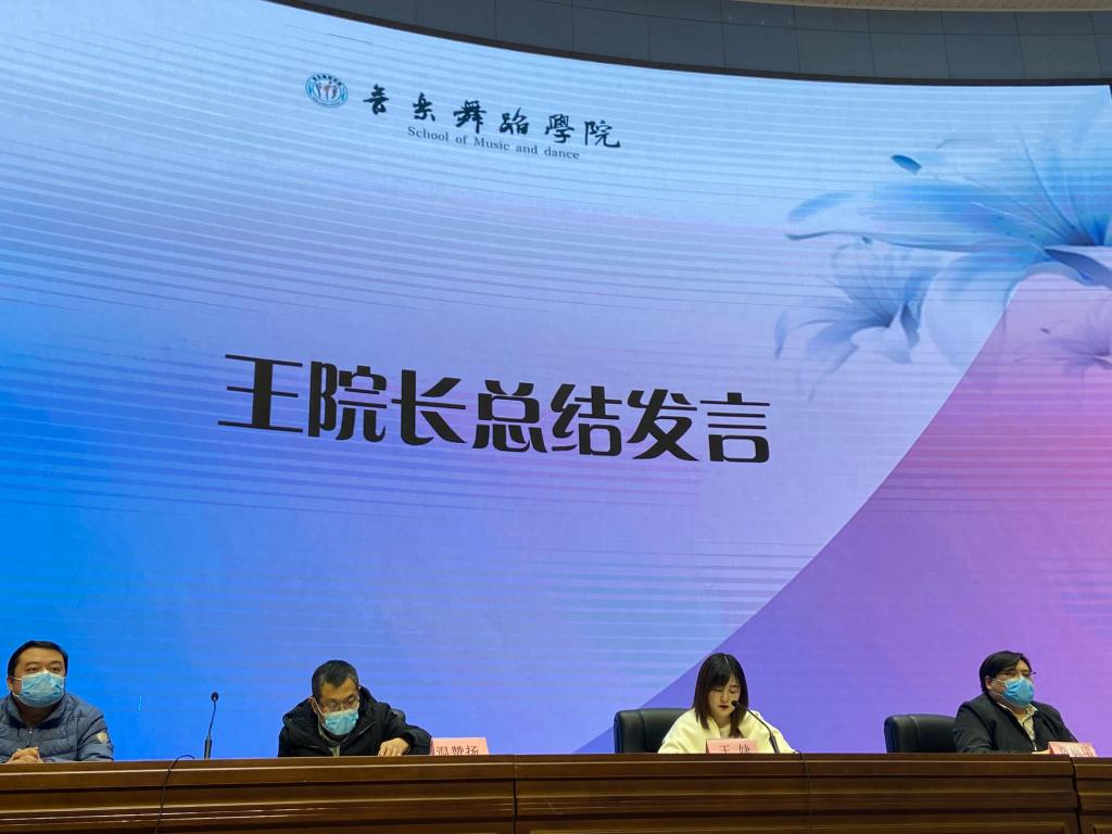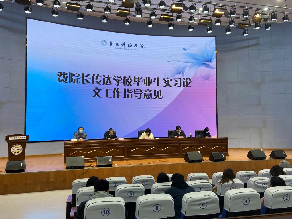 音乐系主任许可和谭巧两位教师面向参会师生分享工作经验、总结和贴心提醒。谭巧老师就实习指导工作中教师工作职责再次进行讲解,特别提醒教师在实习系统的工作操作流程和时间节点等注意事项;许可老师为毕业生论文写作进行了细致的讲解并明确了工作的时间节点。