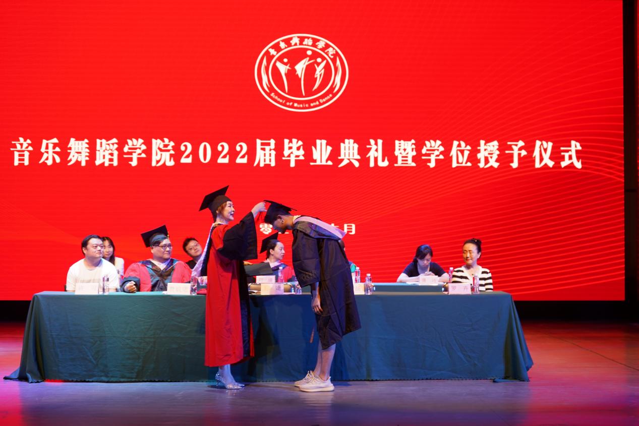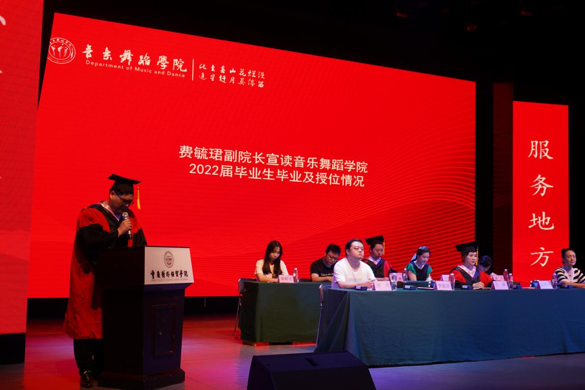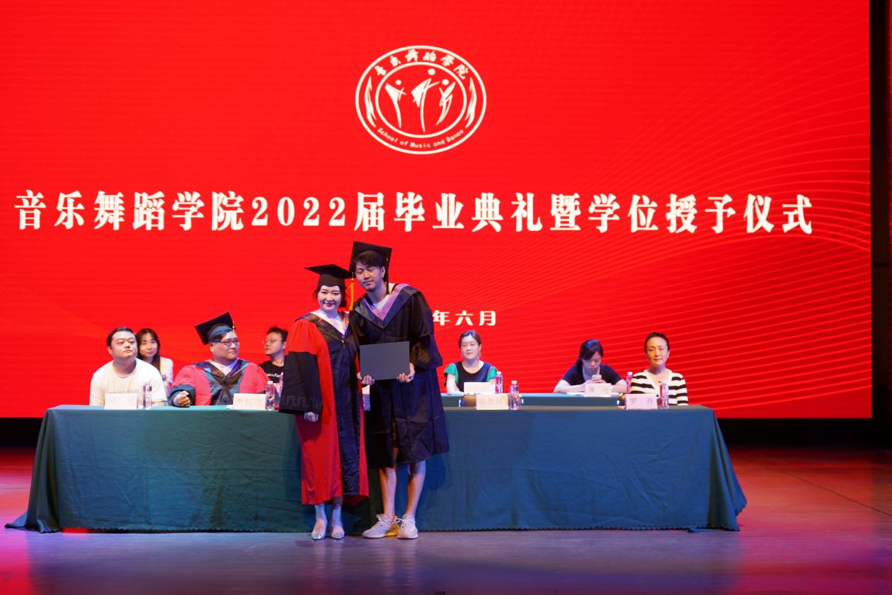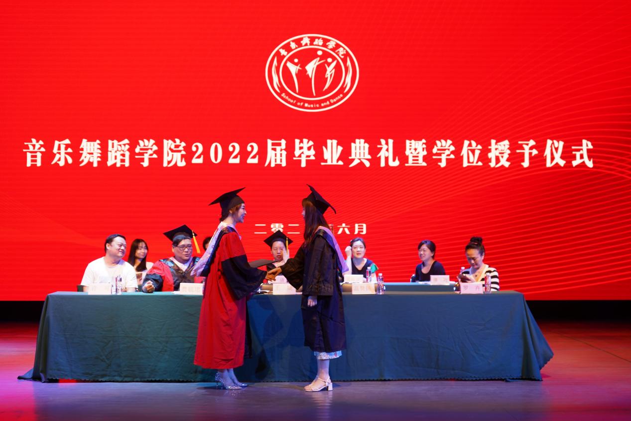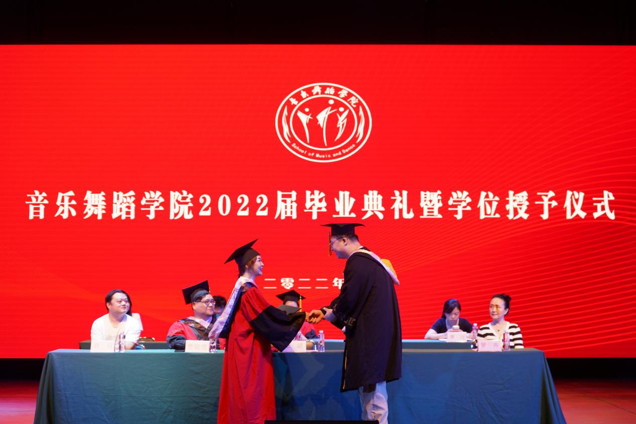 6月21日上午,学校小剧场内光影闪烁、真情漫溢,新葡的京集团350vip88882022届毕业典礼暨学位授予仪式在此隆重举行。350vip8888新葡的京学位评定委员会委员,艺术学学士分委员会副主任,新葡的京集团350vip8888经理王婕副教授;党总支书记温赞扬副教授;艺术学学士分委员委员,副经理费毓珺副教授;艺术学学士分委员会委员刘倩副教授和教师代表们共同祝贺2022届音乐表演专业的144名毕业生圆满完成学业。