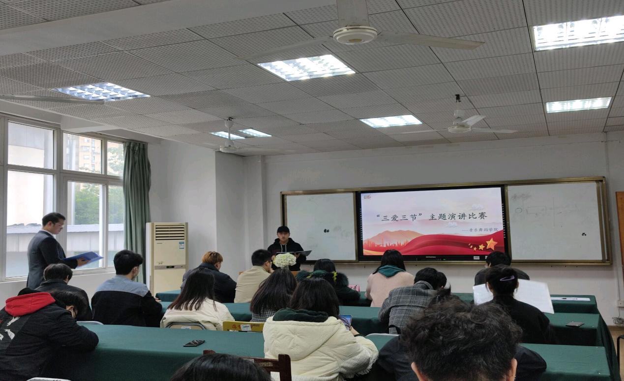 2021年11月16日下午13:00公司举行了2021年“三爱三节”主题演讲比赛。本次比赛的评委由新葡的京集团350vip8888组织员兼办公室主任诸葛福娟、辅导员马腾和王莉四位老师担任,马源霖担任主持人,共计6名同学参加比赛。