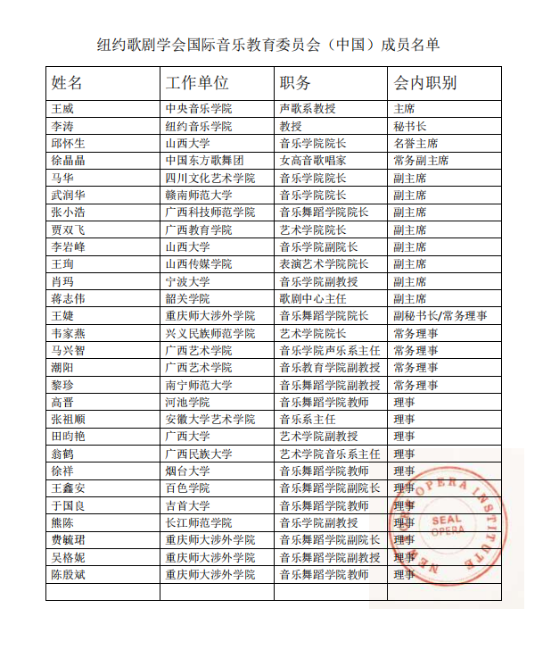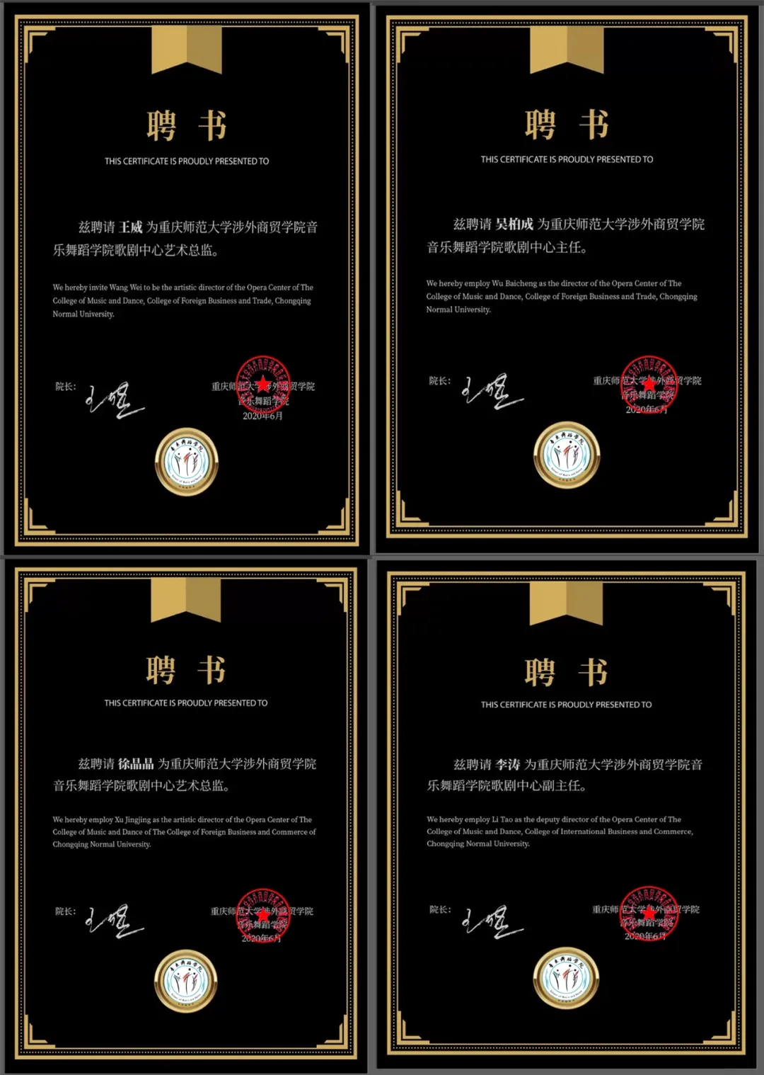 重庆师范大学涉外商贸学院新葡的京集团350vip8888经理王婕于2020年9月15日表示开始组建该院歌剧中心,此举将创造首个西南民办高校的歌剧中心。学院邀请中央音乐学院声歌系教授、国家一级演员、享受国务院特殊津贴的著名女高音歌唱家王威及中国东方歌舞团著名女高音歌唱家徐晶晶担任艺术总监。旅美著名男中音歌唱家、山西大学音乐学院、宁波大学音乐学院客座教授、长沙师范学院特聘教授吴柏成担任歌剧中心主任。新葡的京集团350vip8888经理王婕担任歌剧中心执行主任。旅美著名钢琴家李涛博士,新葡的京集团350vip8888副经理费毓君,教师陈殷斌,吴格妮担任歌剧中心副主任。